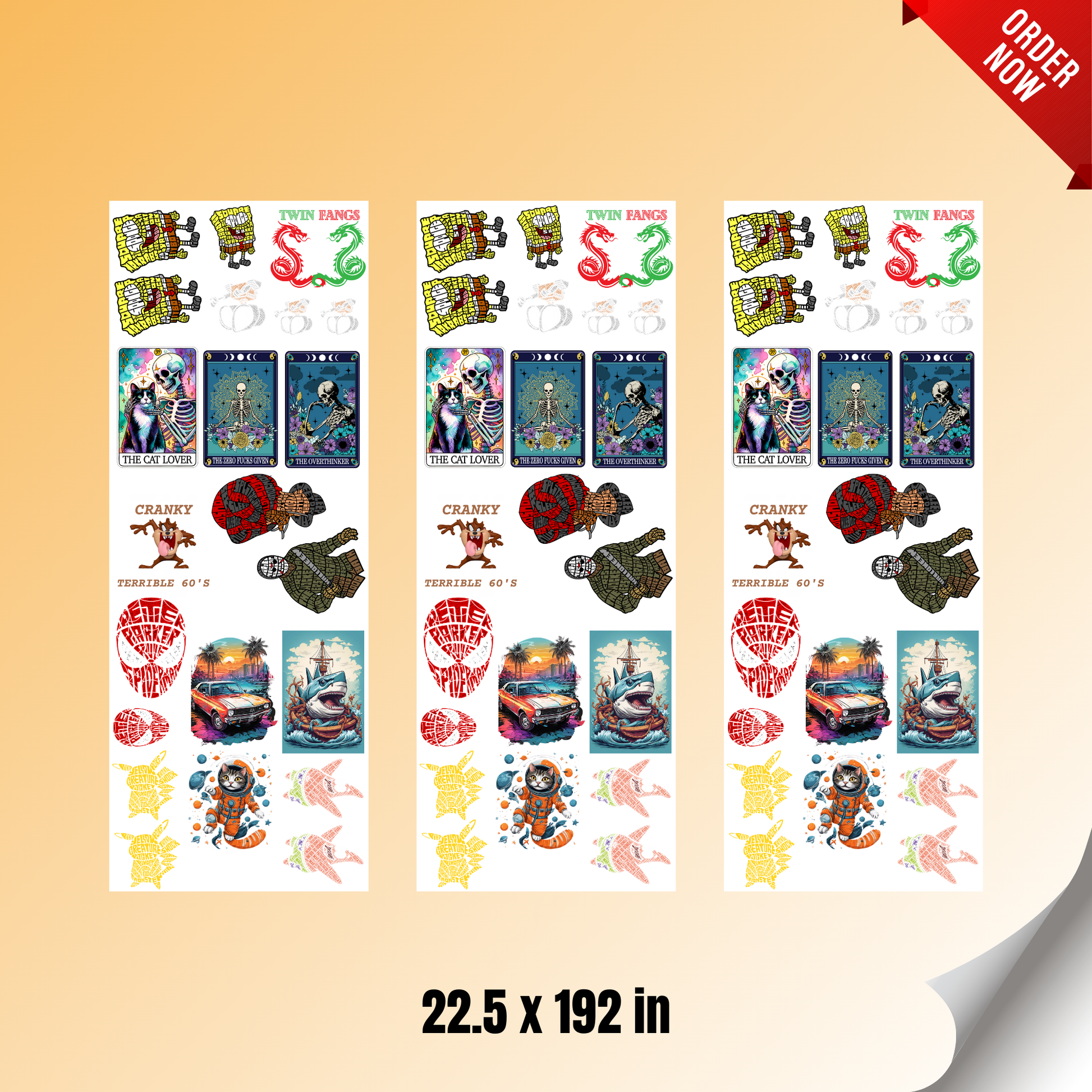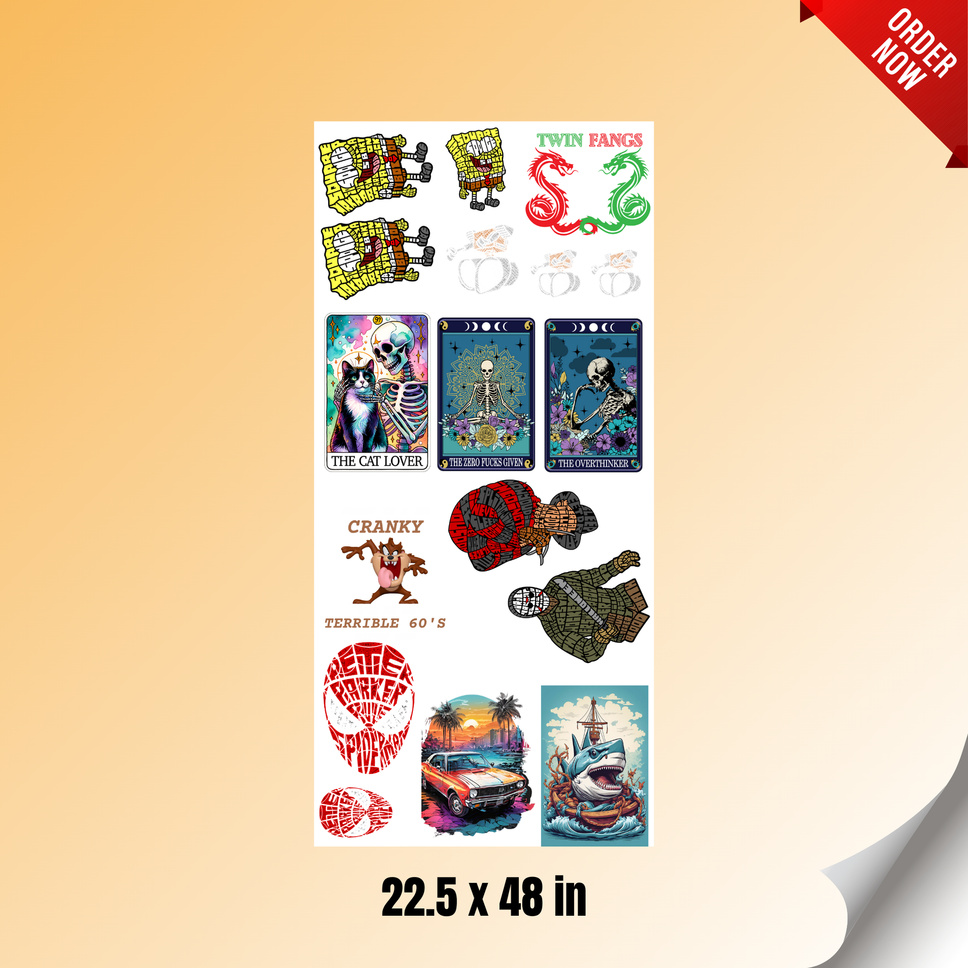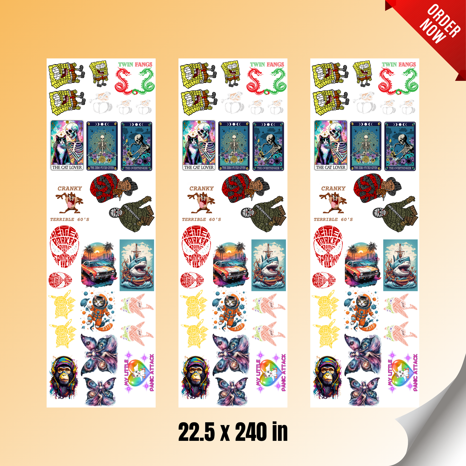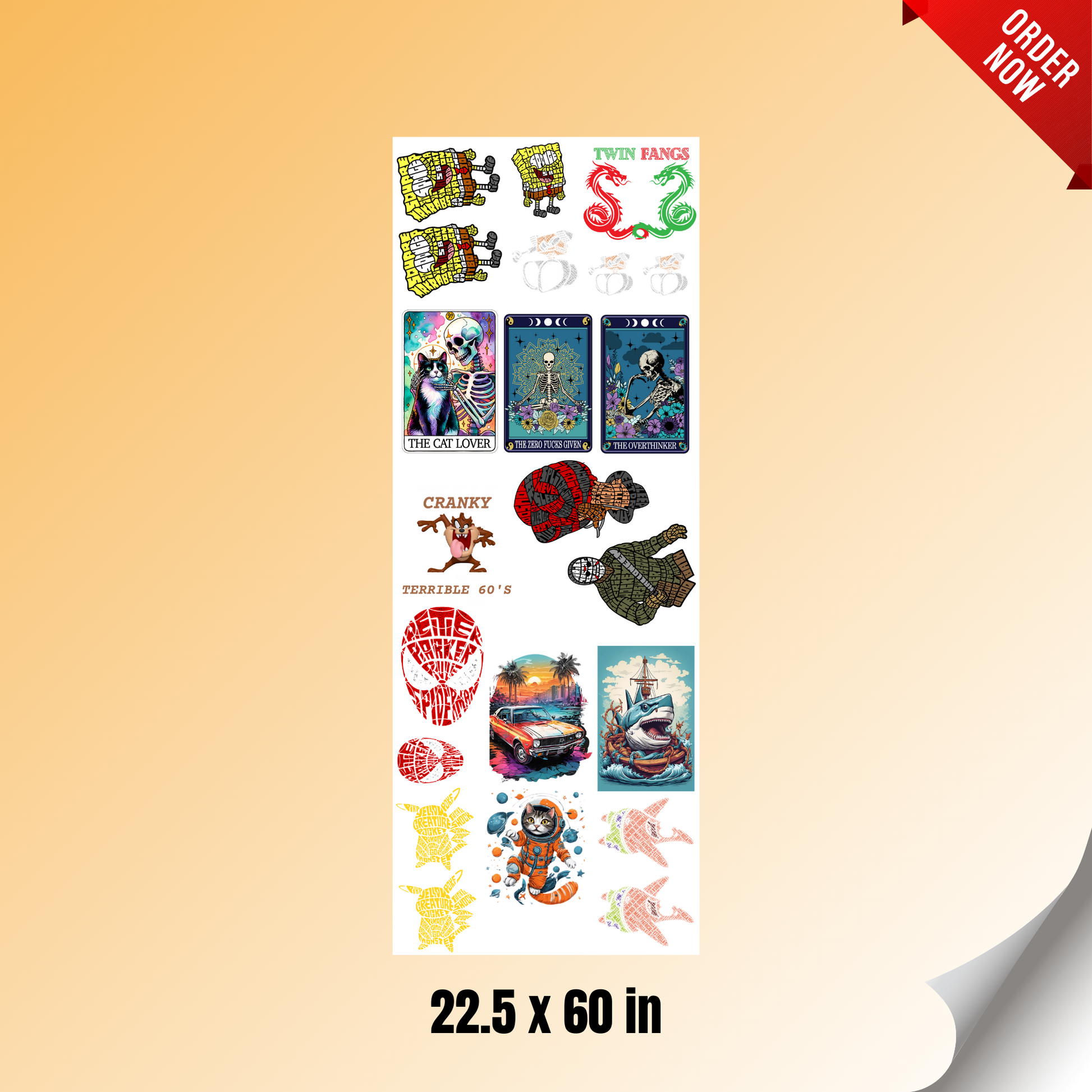Our DTF transfers work on cotton, polyester, blends, and even leather, making them perfect for t-shirts, hoodies, crewnecks, tote bags, and more.