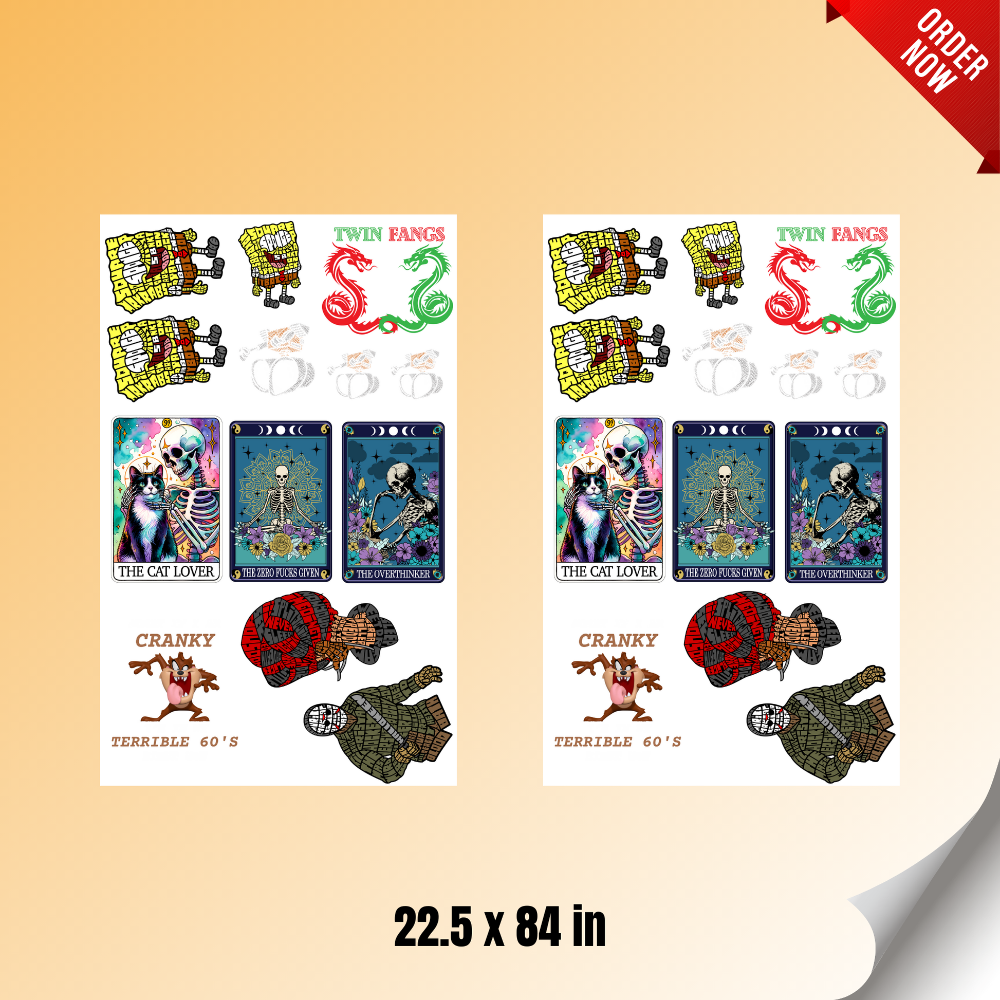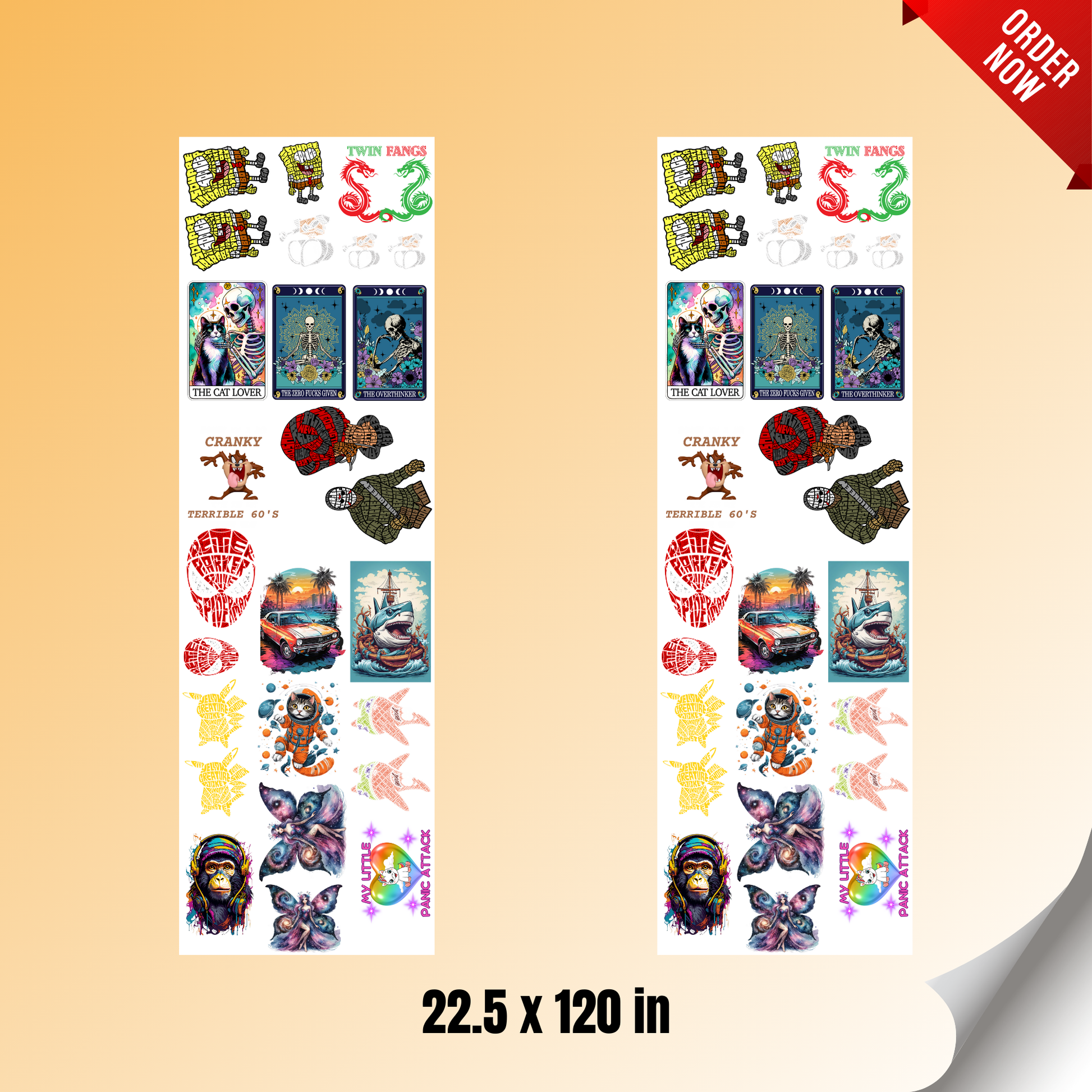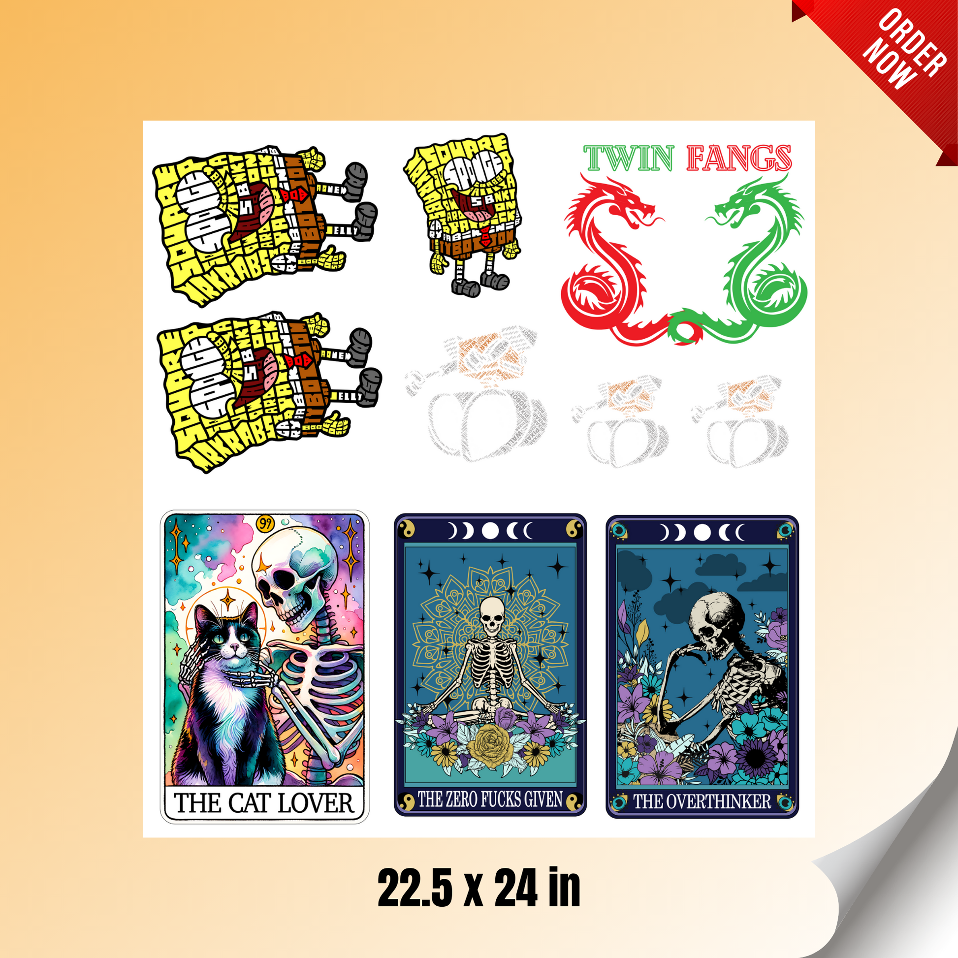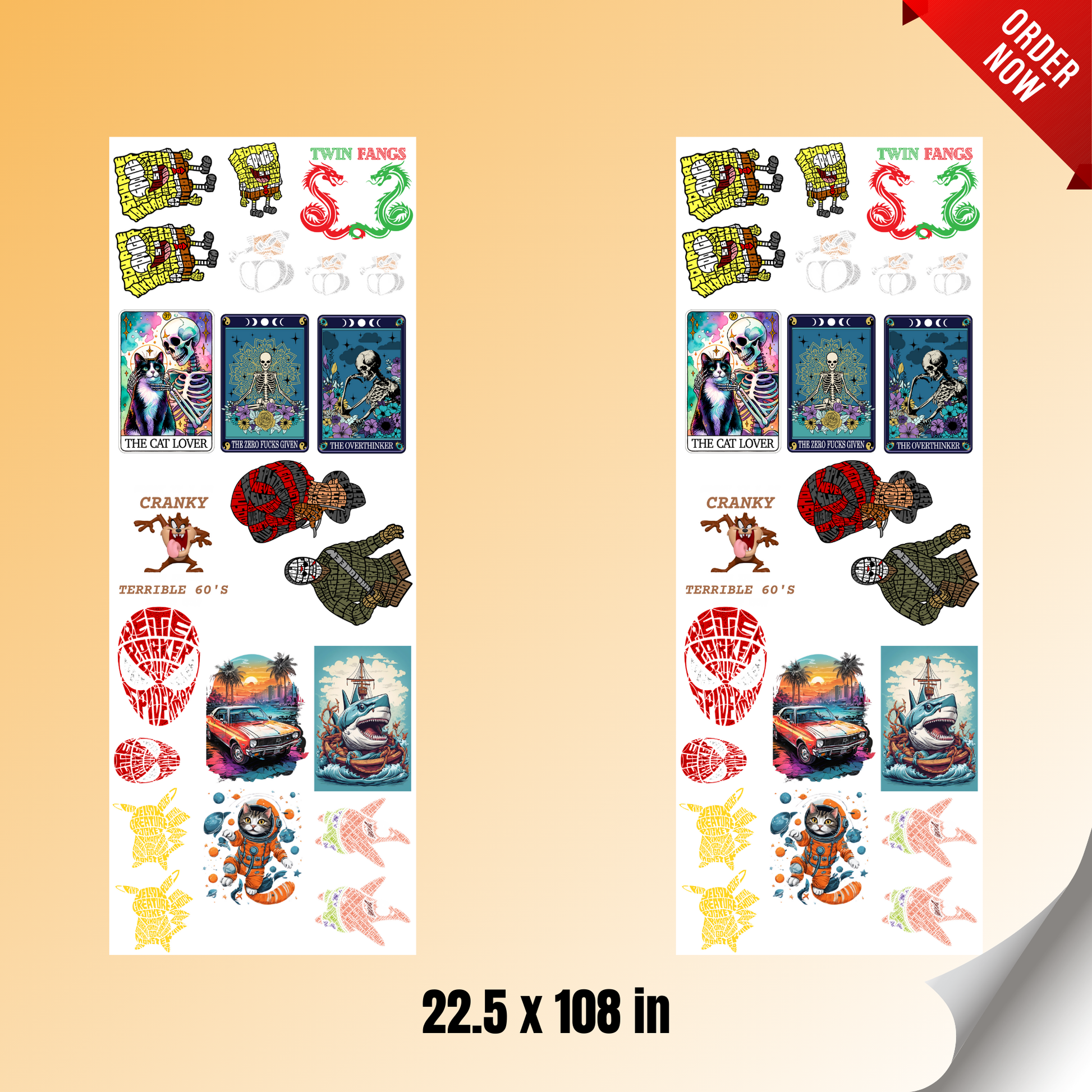 Our DTF transfers work on cotton, polyester, blends, and even leather, making them perfect for t-shirts, hoodies, crewnecks, tote bags, and more.
